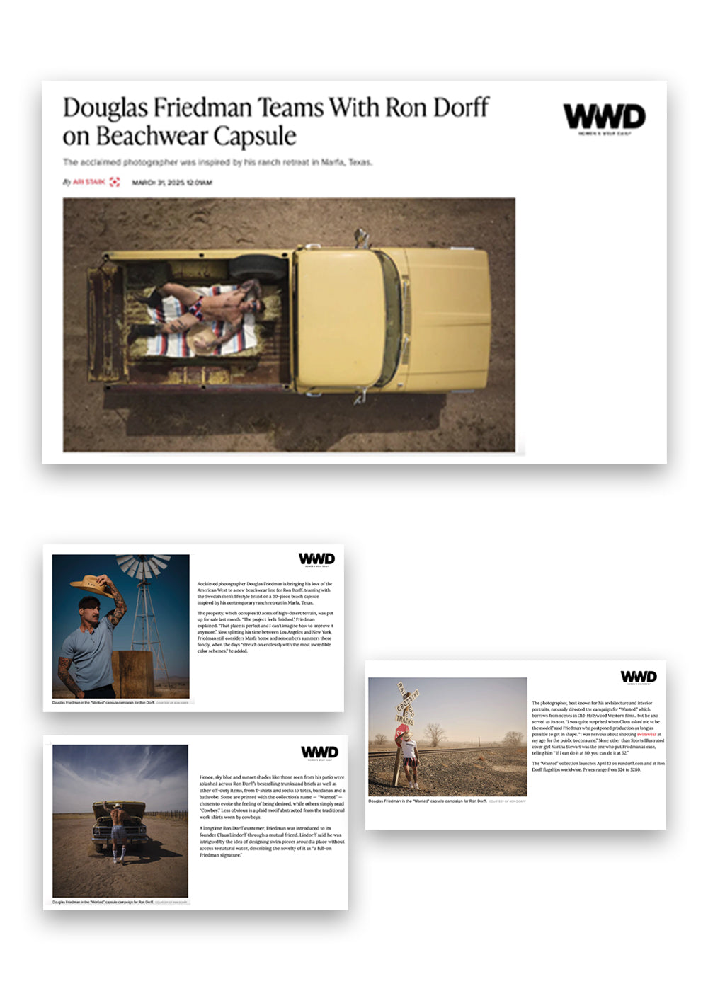 French-Swedish menswear brand Ron Dorff collaborates with Texas-based photographer Douglas Friedman for a swimwear collection that blends Scandinavian minimalism with a rugged American flair.
