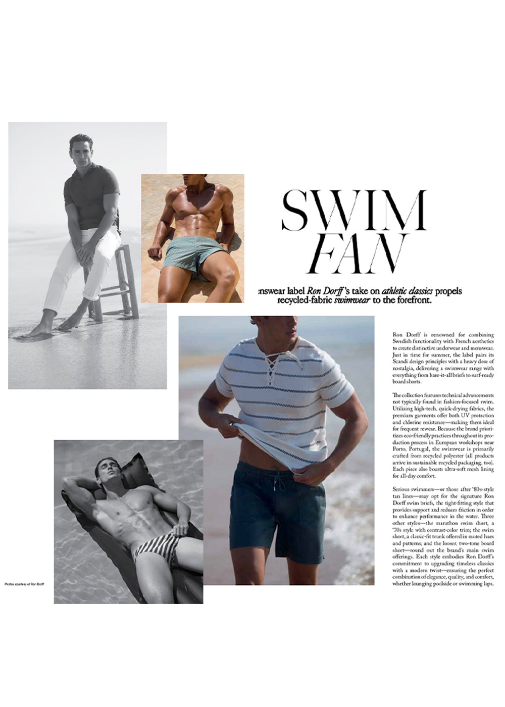 Discover the latest news and press articles on the Ron Dorff brand. Ron Dorff has been named one of the best swimwear brands in the world for men by Vogue and one of the best underwear brands for men by GQ. We count icons from across the world of sport and film as fans of the brand including Tom Daley, Orlando Bloom and Neil Patrick Harris, amongst many others