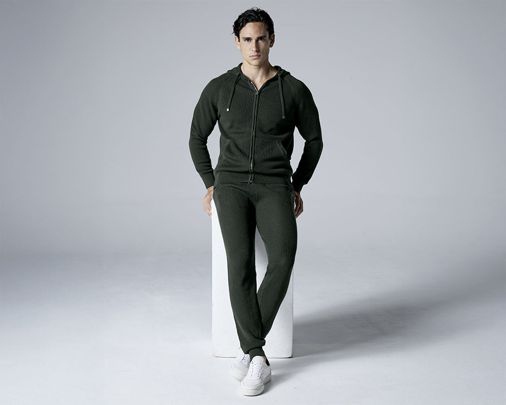 Pantalon en laine côtelée: Kaki foncé