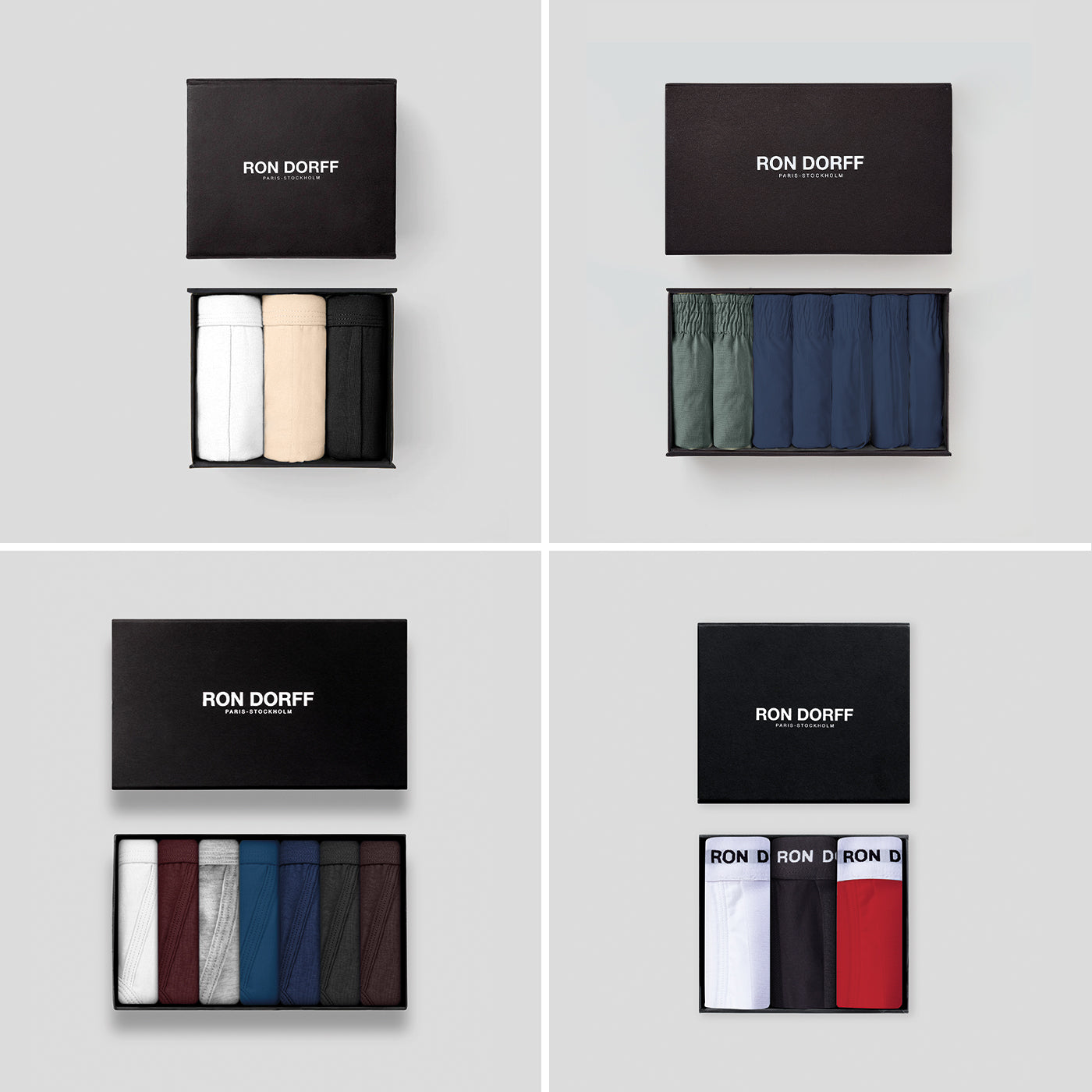 Les sous-vêtements classiques sans fioritures et sans logo sont inspirés des vêtements développés pour l'armée suédoise dans les années 70. Choisissez parmi les cinq modèles classiques de Ron Dorff : Y-front briefs (slips), boxer briefs (boxers), boxer shorts (caleçons), jockstraps et long johns. Tous nos modèles sont en coton premium et contiennent de l’élasthanne pour garantir une tenue parfaite après lavage. Pour les amateurs de sous-vêtements, nous proposons le 747 kit : sept sous-vêtements pour les sept jours de la semaine. Nous proposons aussi un kit de découverte idéal : le Weekend Kit composé de trois sous-vêtements. Toute la collection est confectionnée près de Porto au Portugal.
