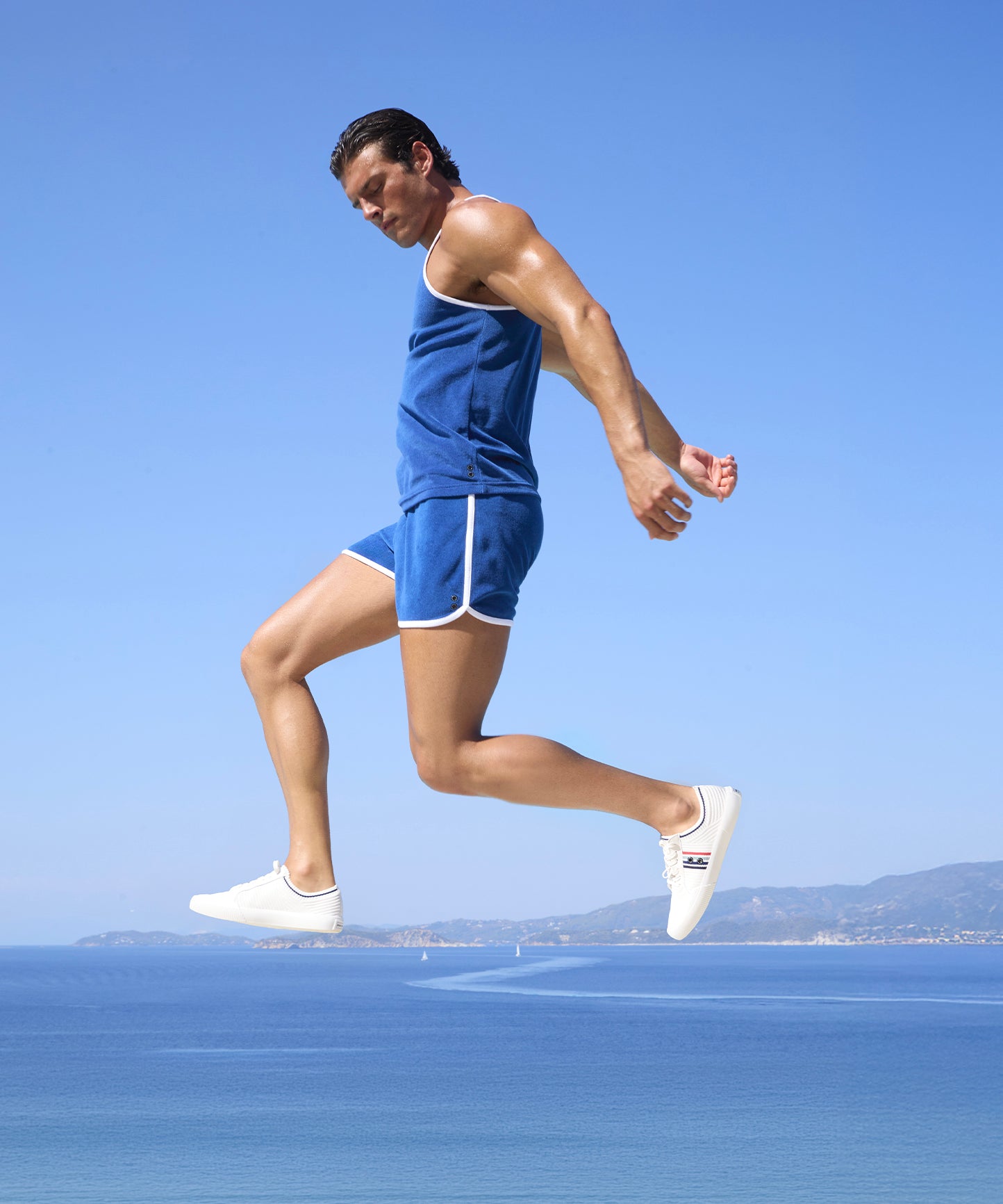 Le nouveau débardeur de sport RD est conçu dans un tissu éponge léger et ultra doux, composé de coton bio et de polyester recyclé. Le terry est la matière idéale et agréable pour la plage ou la piscine, tout en apportant une touche vintage. Revisité avec des bords blancs pour un look sportif. Les deux œillets RD brodés ton-sur-ton sur le côté.
