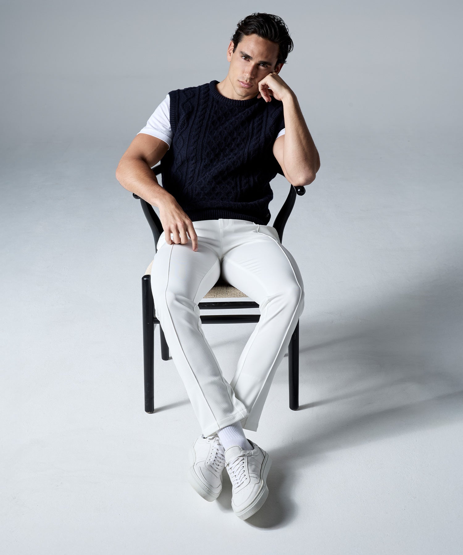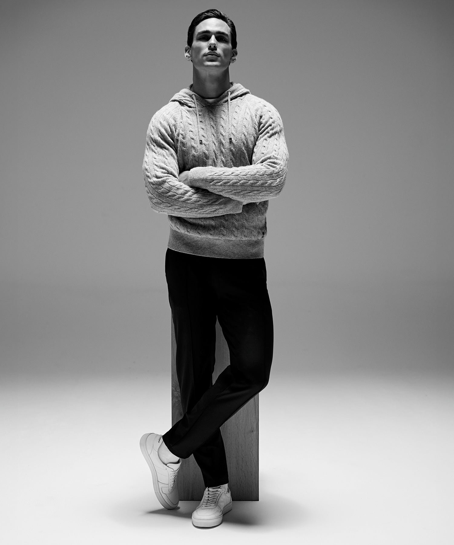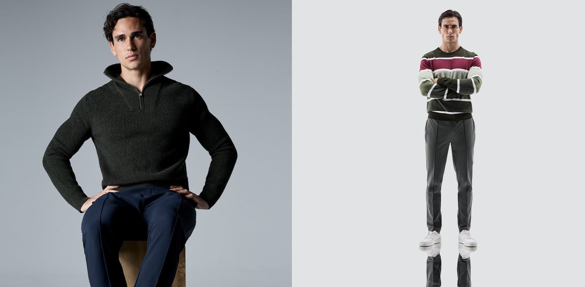 Deep forests and icy twilights, the collection explores a palette of intense khaki greens, with warm highlights of pink and burgundy. Pure sports cashmere and soft wool blends across knitwear offering enveloping comfort, while the structured ribbing recalls the functional elegance of traditional Swedish patterns. Polar Dusk embodies a robust and refined style, perfect for embracing winter with character.