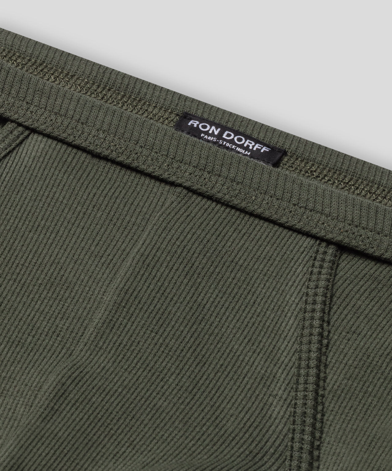 The new Y-front briefs inspired by a model developed for the Swedish Army in the 70s, now available in a new ribbed cotton version, offering a textured feel and enhanced support. Designed with a tapered fit and cut in the finest cotton with a hint of elastane for a guaranteed fit wash after wash. Elastic waistband covered by fabric for ultimate comfort and reinforced top stitching. Fly opening for maximum convenience. The two discrete, RD eyelets embroidered tone-on-tone on the side.