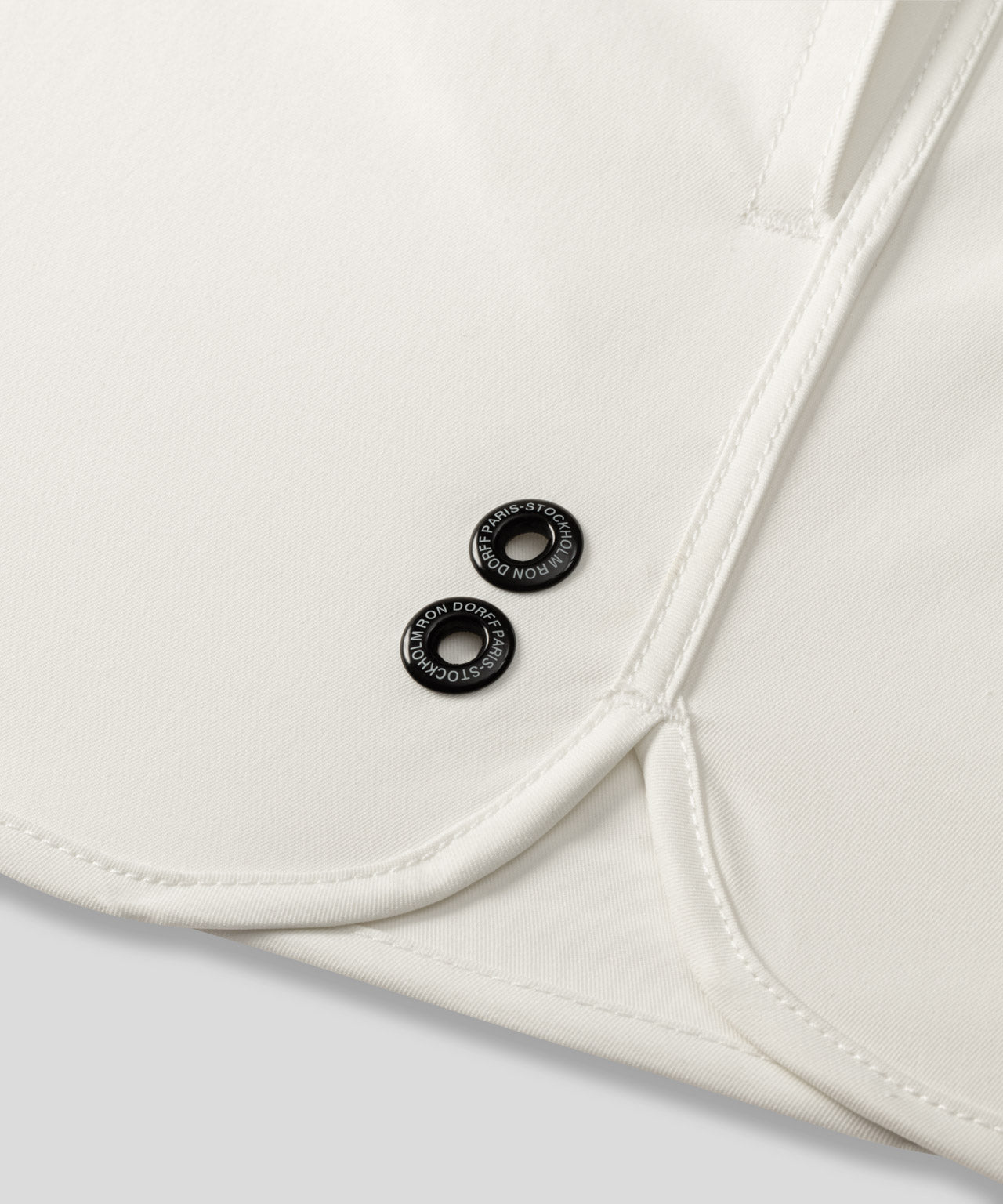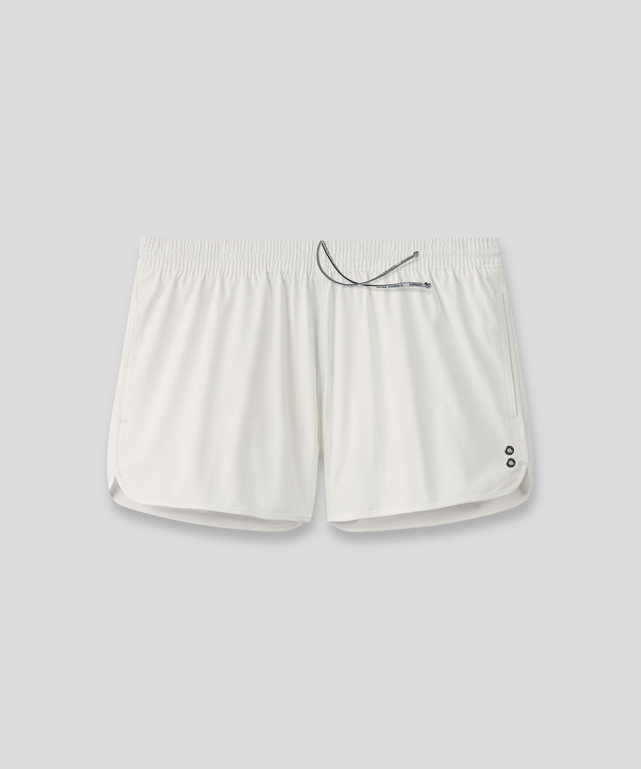 This new version of the classic RD exerciser shorts comes with the typical rounded side slits of the early 80s. Designed with a slightly tapered fit and short legs for an enhanced silhouette. Cut in highly-resistant and breathable polyester with a light micro-mesh lining. Feature a comfortable elastic waistband with adjustable drawstring, two side pockets and those cult side slits for optimal movement. The two discrete black-lacquered RD eyelets on the side.