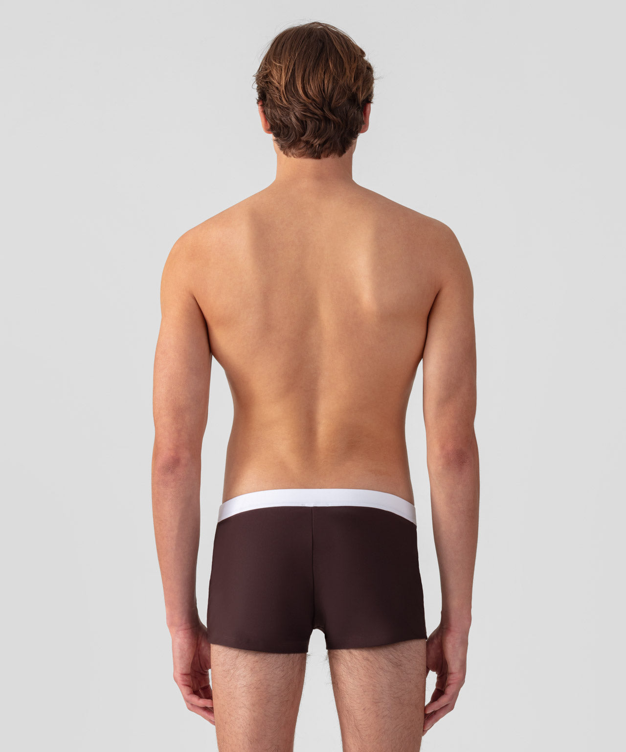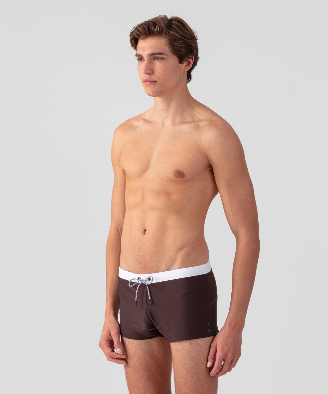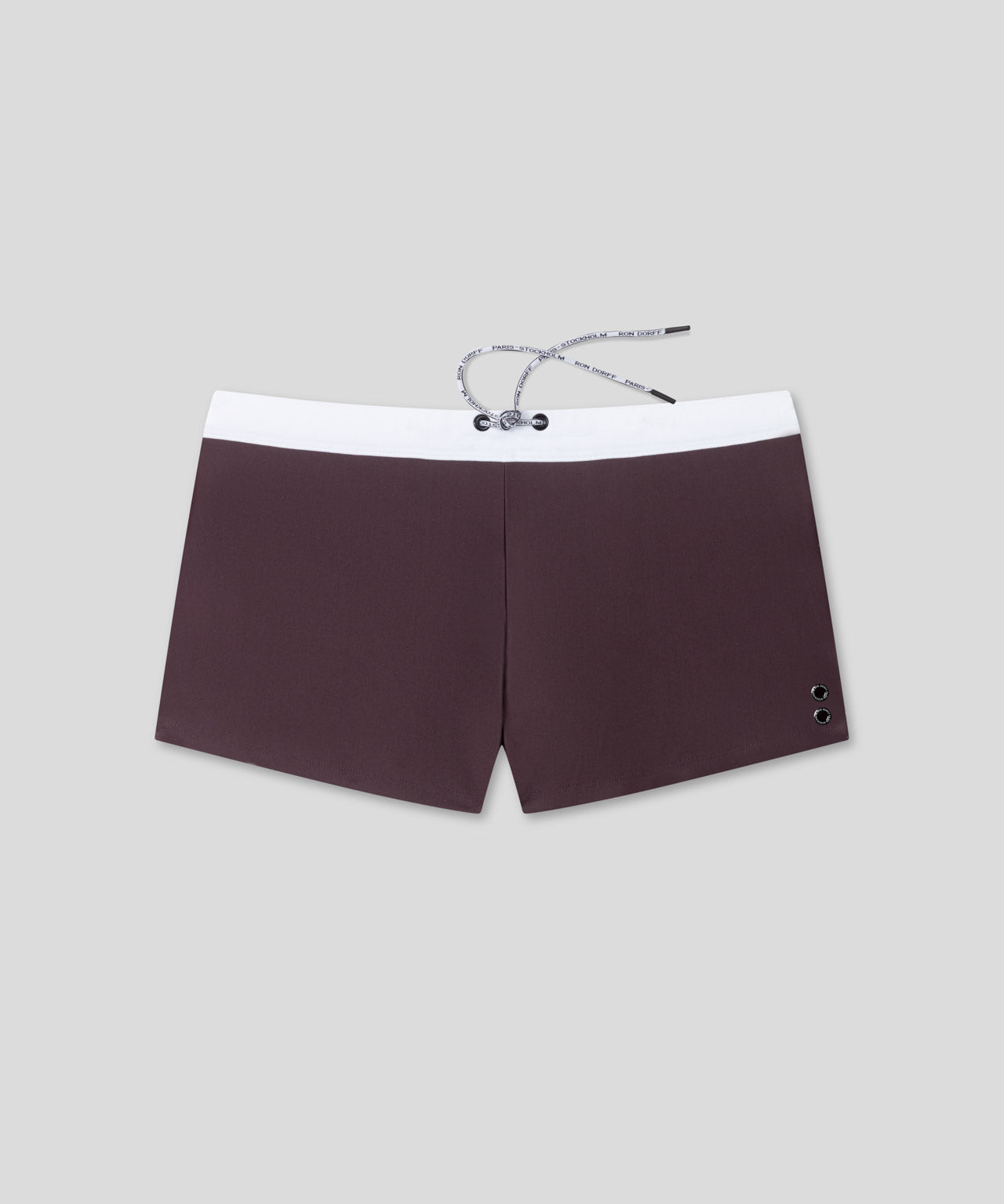 Inspired by a model worn on the French Riviera in the 80s as an alternative to the shorter swim briefs. Come with a white waistband for a retro look. Made in an extra-thick but quick-drying Italian-made polyamide for optimized silhouette and guaranteed fit swim after swim. Breathable micro-mesh lining. Ideal for frequent pool use. Elastic waistband with interior drawstring. Featuring the double black-lacquered RD signature eyelets on the side.