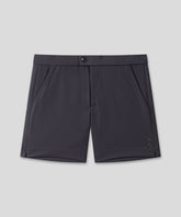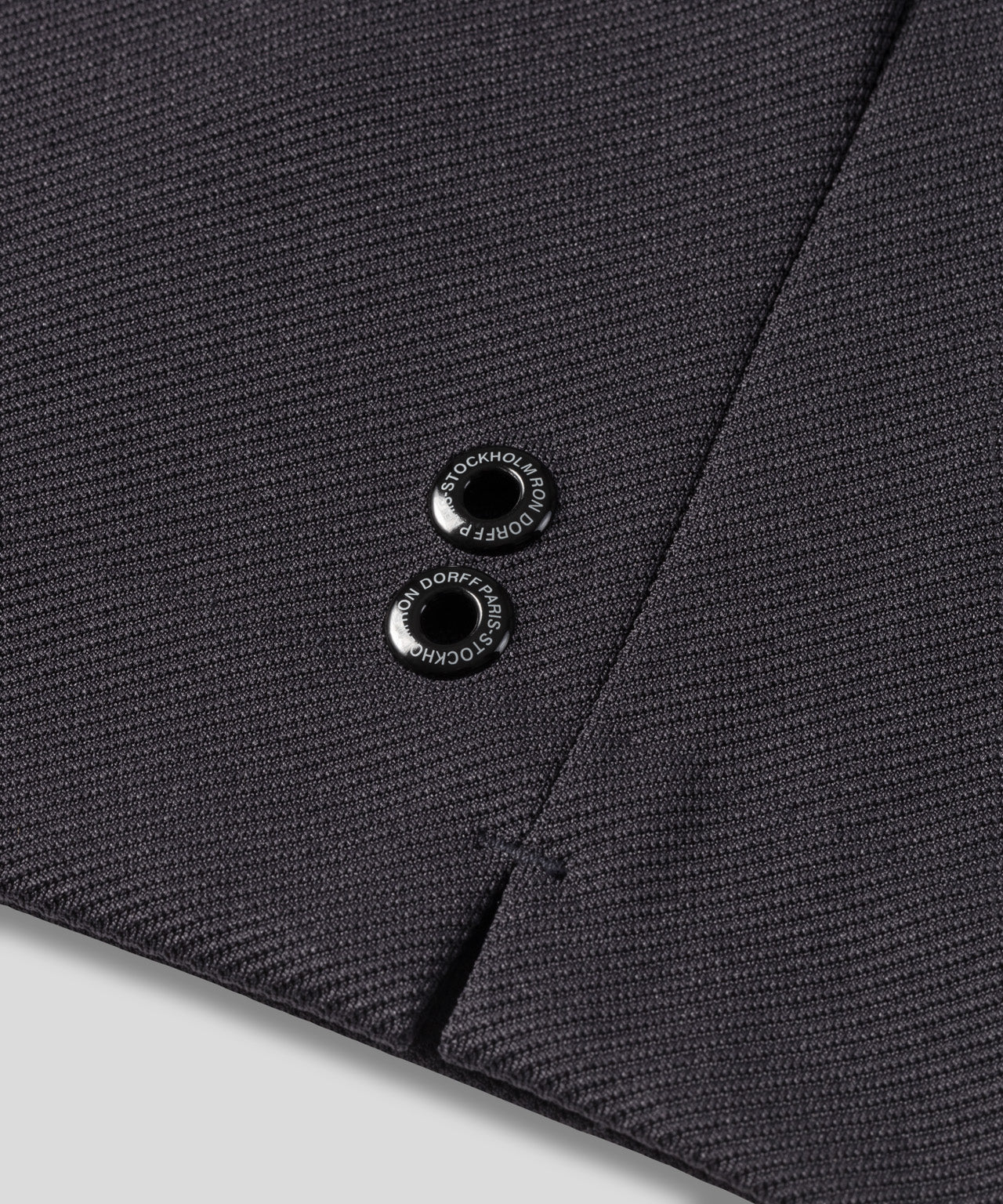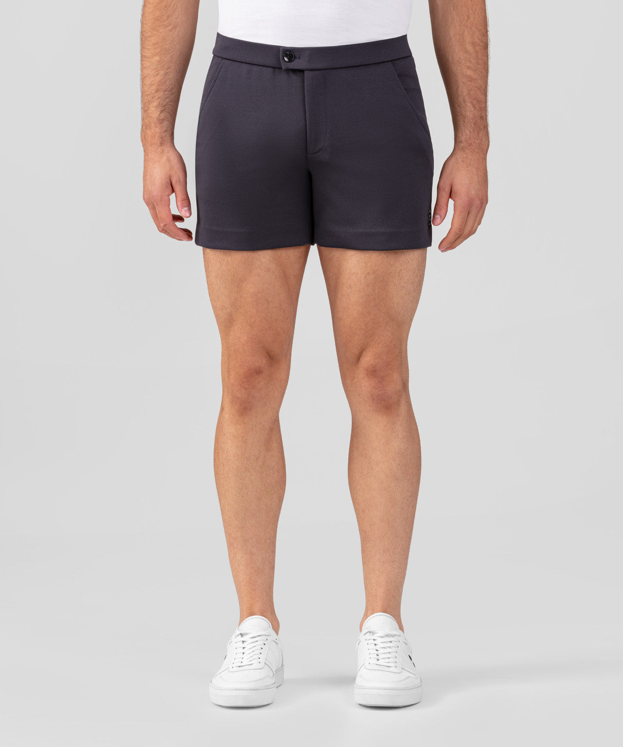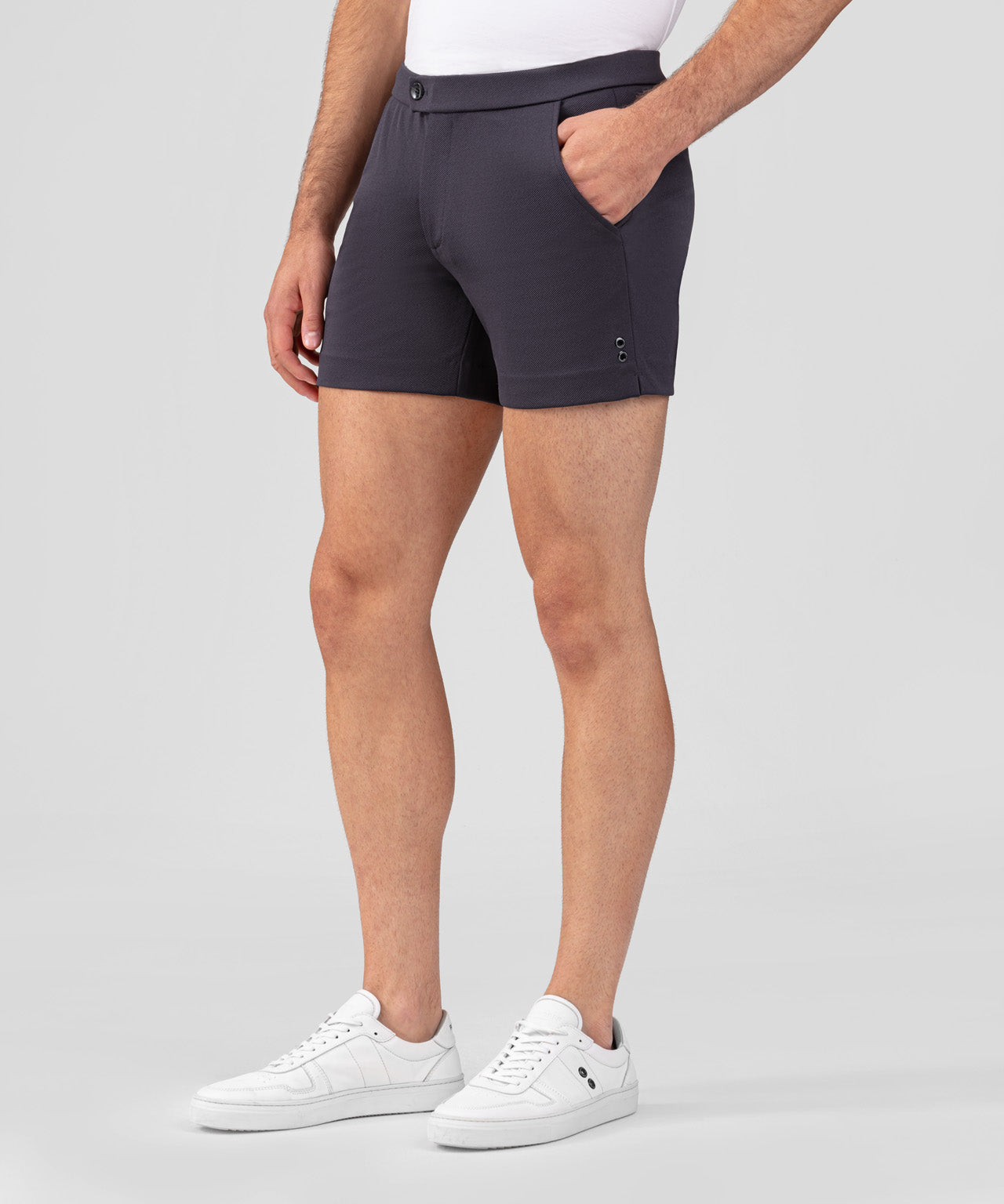 The cult tennis shorts of the early 80s as worn by Björn Borg, Jimmy Connors and John McEnroe. Designed with a slightly tapered fit with side slits. Cut in a breathable, stretch polyester with a hint of elastane. RON DORFF engraved button and two side pockets. No back pockets. Featuring the two discrete black-lacquered RON DORFF eyelets on the side.